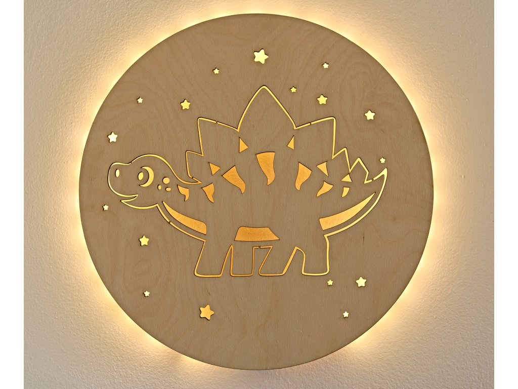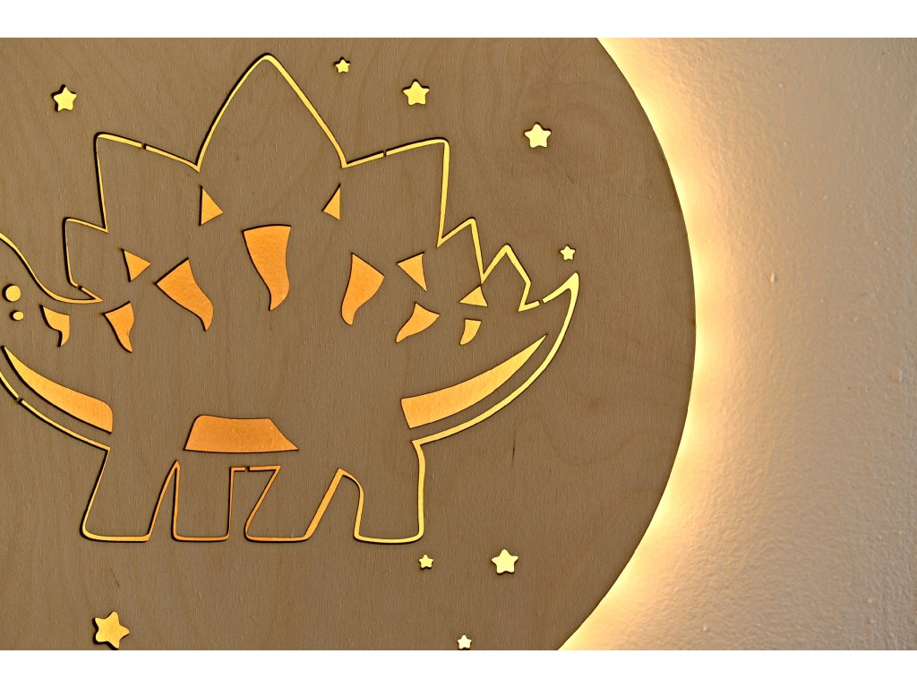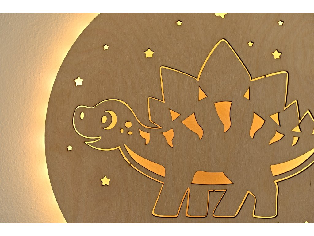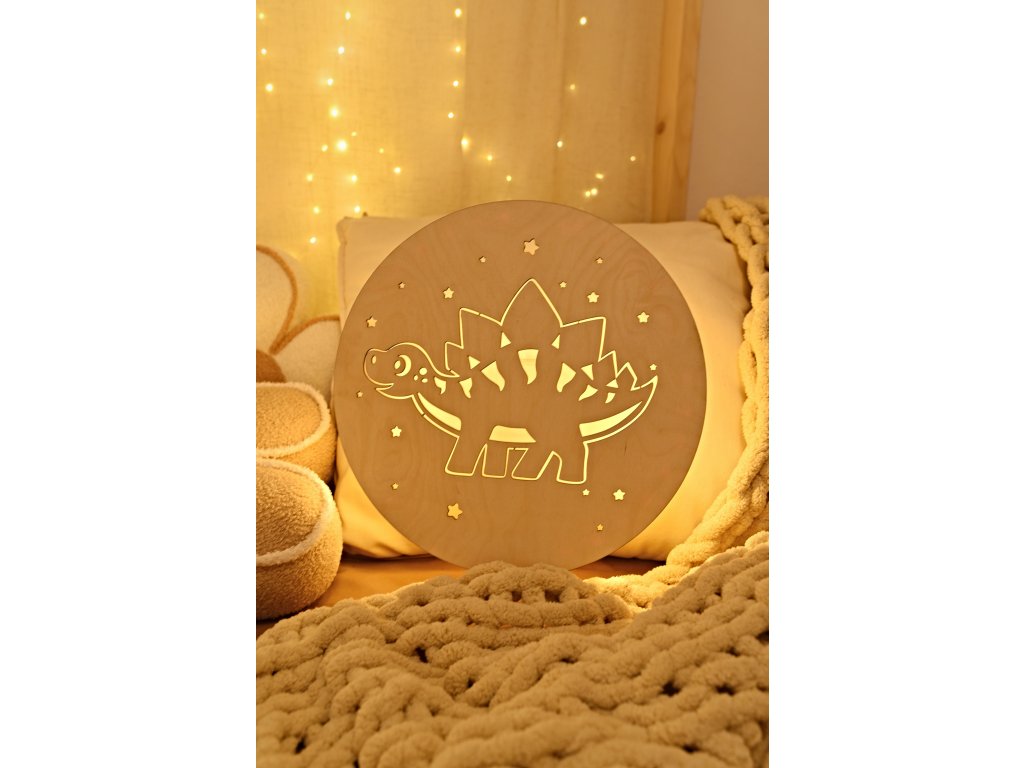 Dřevěné dětské světýlko s motivem Stegosaura rozzáří každý dětský pokojíček.