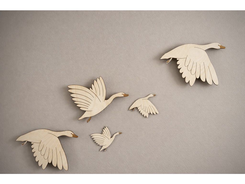 Labutě jsou vyrobeny z březové překližky o tloušťce 3 mm, která má krásnou přírodní kresbu a působí teple a útulně.