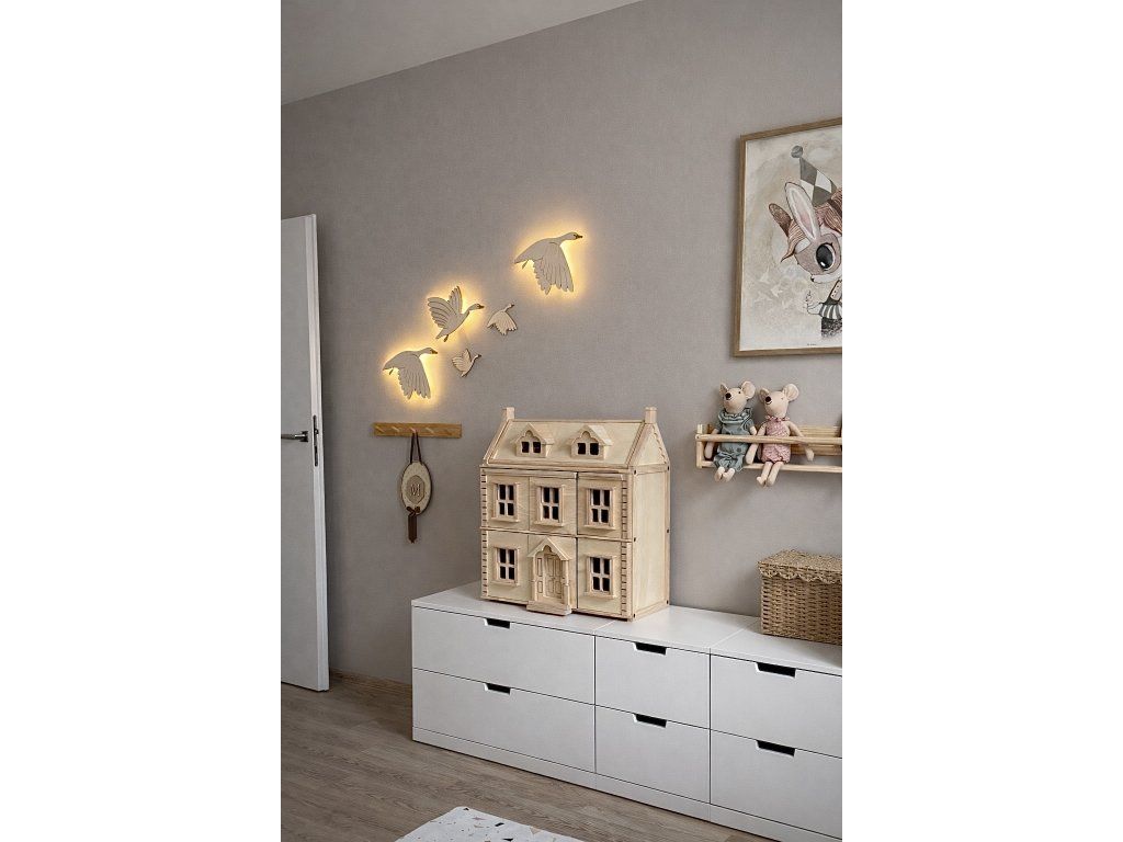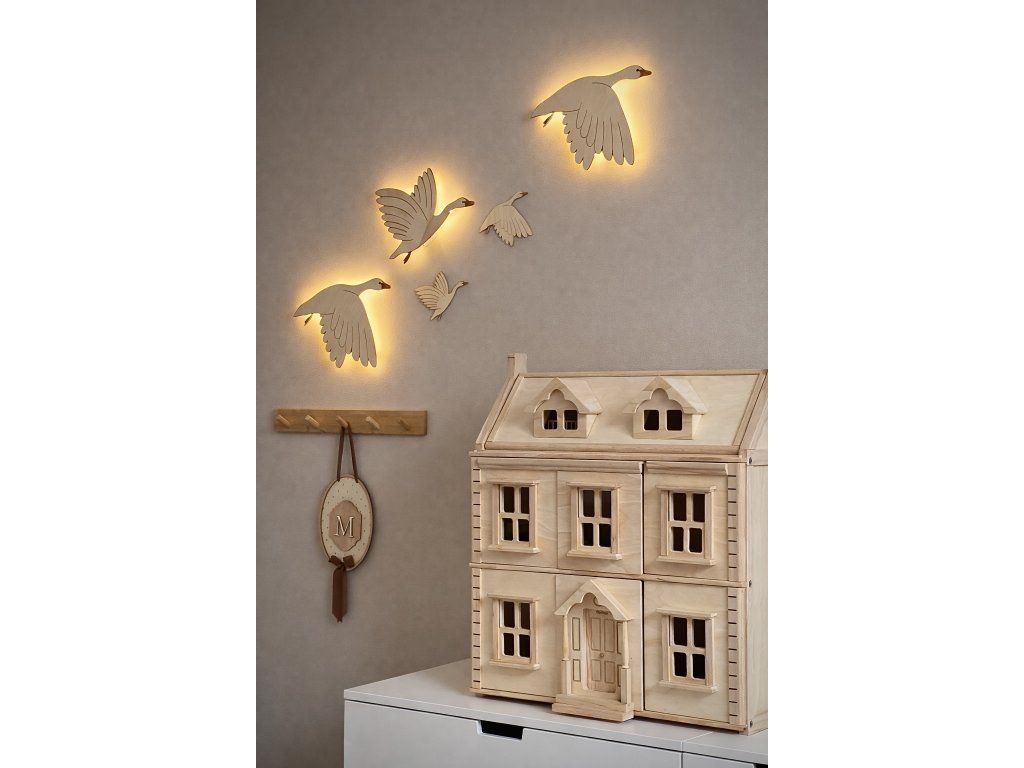 Sada dřevěných labutí vnese do pokojíčku jemnost, něhu a pocit bezpečí.