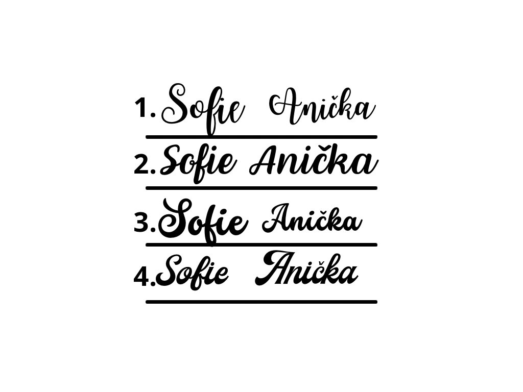 Velice rádi vám vypracujeme návrh vašeho jména zdarma a doladíme nápis k dokonalosti podle vašich představ.