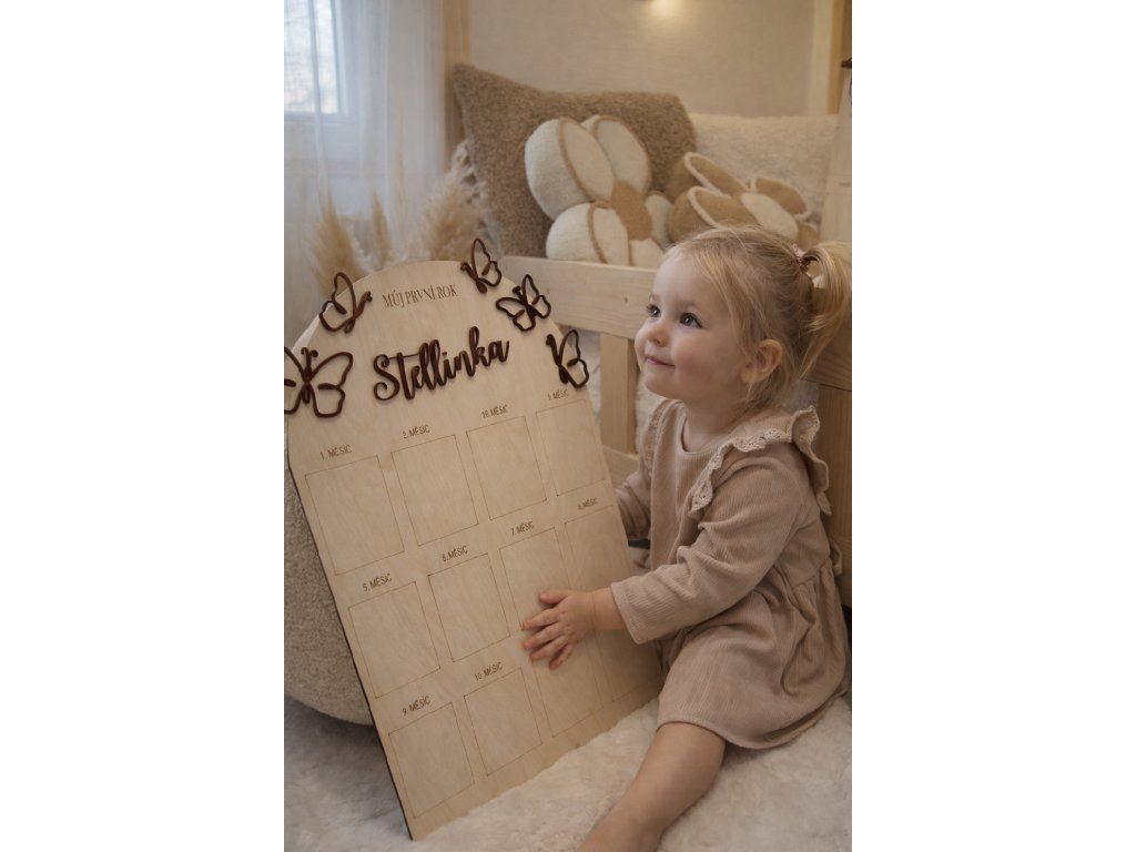 Od 1. měsíce až po 1. rok tak vznikne nádherný příběh růstu vašeho dítěte — přehledně, jemně a s láskou.