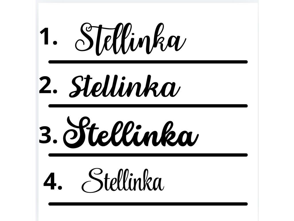 Jméno dítěte (včetně diakritiky) a číslo zvolené varianty písma uveďte do poznámky pro prodejce před odesláním objednávky. (například: Stellinka č.1)
