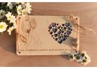 Dřevěná svatební obálka s motivem novomanželů a srdíček. Ideální pro peněžní dar nebo přání ke svatbě. Darujte peníze originálně, darujte nezapomenutelný zážitek.