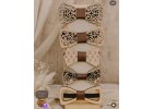 Luxusní dřevěný motýlek z bukového dřeva s jemným ornamentálním vzorem a středem z hnědé stuhy. Stylový doplněk pro svatbu i jiné slavnostní příležitosti.