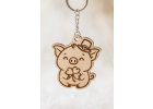 Roztomilá dřevěná klíčenka ve tvaru prasátka se čtyřlístkem - malý talisman, který potěší děti i dospělé